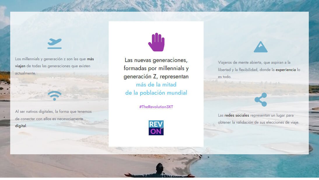 Por eso, este era el momento. El momento en que «The Revoluti-ON 3xt» tenía que aparecer. Un análisis exhaustivo enfocado al marketing de las nuevas generaciones de viajeros, precisamente en la etapa en la que el empujón tecnológico ha sido más fuerte.